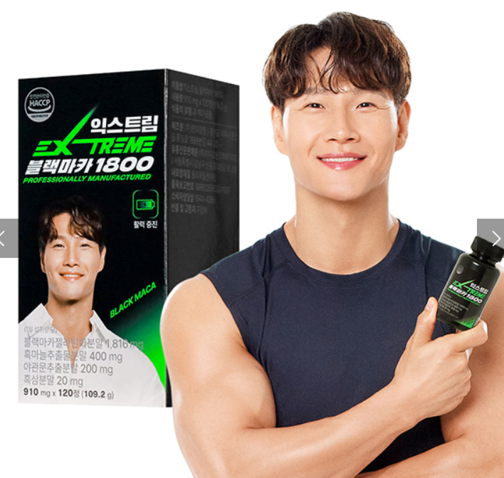 김종국이 홍보하고 있는 익스트림의 블랙마카 1800 제품입니다. 저 또한 내돈내산으로 블랙마카 제품을 블랙마카 1800으로 입문하였습니다. 아무래도 김종국님께서 방송에서 보여지는 헬스 분야 신뢰도가 있기 때문에 믿고 사게 되는 것 같습니다. 이 제품도 젤라틴화 된 공법으로 가공되었습니다.