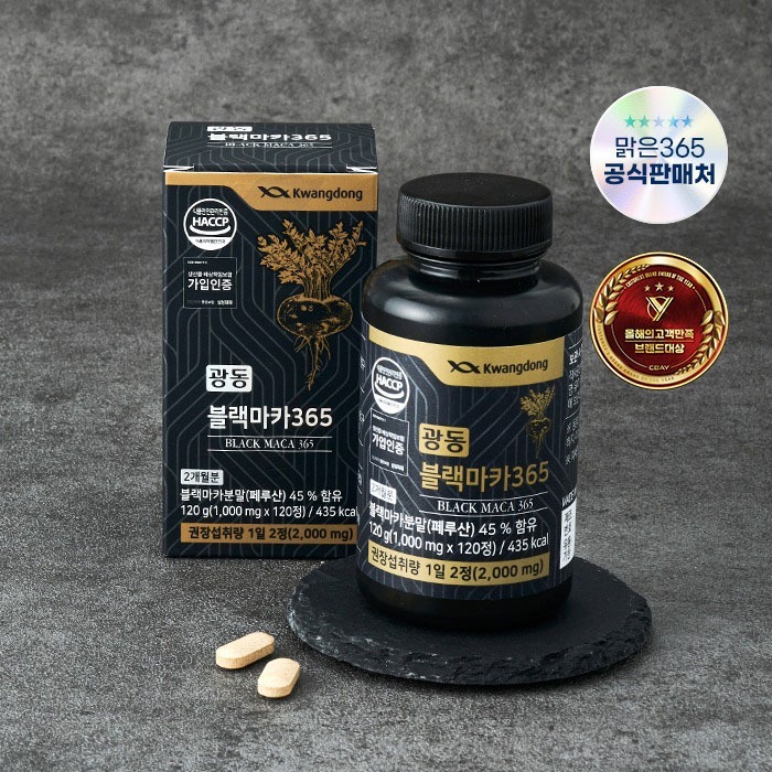 2023 활력, 피로해소 부분 1위를 한 광동 블랙마카 제품입니다. 이 제품 또한 알약 형태 제품으로 먹기가 간편합니다.