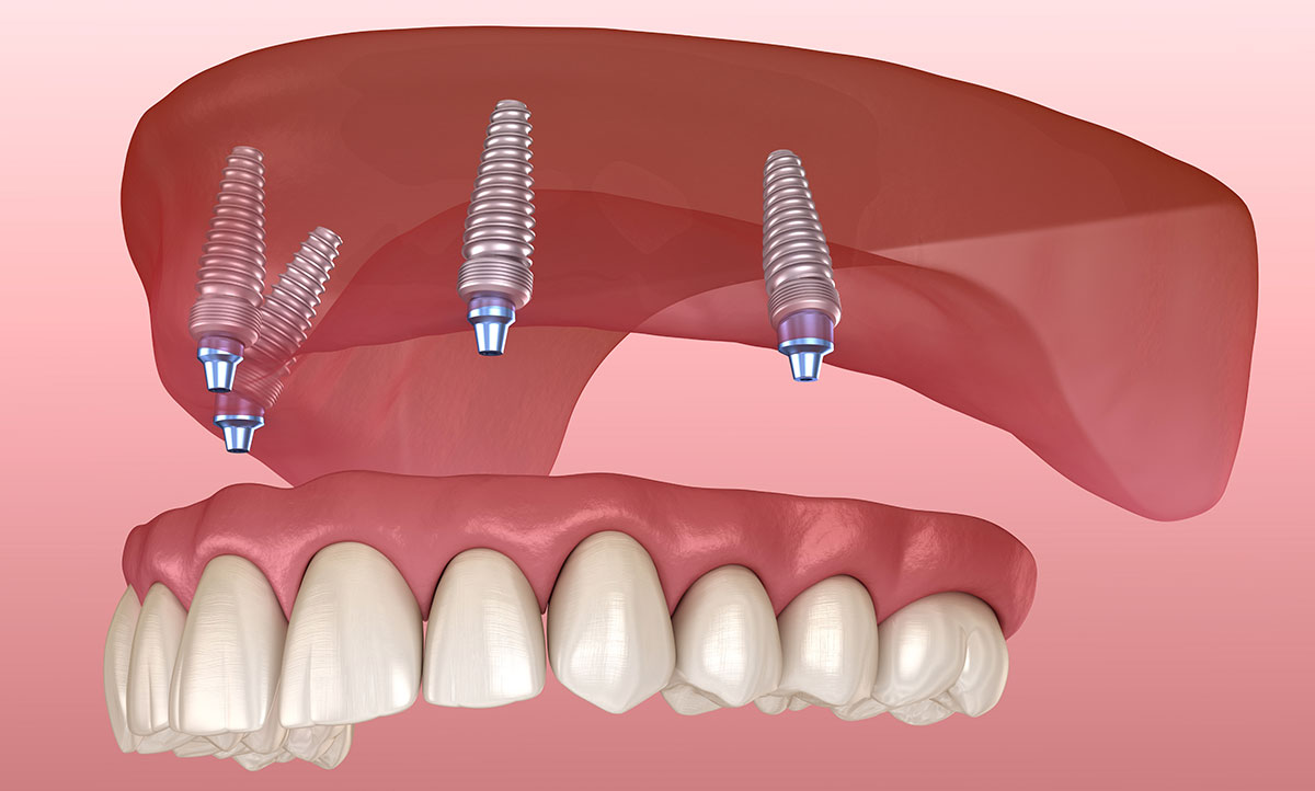 풀아치 임플란트는 구강 전체를 스캔하여 환자의 상태를 정밀하게 파악한 뒤, 상악과 하악에 보통 6개 정도의 인공치근을 심는 방식으로 진행됩니다. 그 다음에는 지대주를 연결하고 보철물을 씌워 마무리합니다.