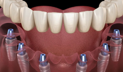 요즘에는 이러한 틀니의 단점을 보완한 풀아치 임플란트라는 치료법이 주목받고 있습니다. 풀아치 임플란트란, 치아가 거의 없는 상태의 턱뼈 일부에 여러 개의 임플란트를 심어 전체 치아의 기능을 회복하는 치료법입니다.