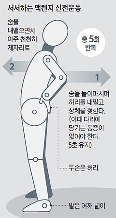 허리 환자분들의 운동은 천천히 시작하고 통증이 발생하지 않는선에서 진행해야합니다. 운동중 허리통증이 심해지거나 의문이 있을경우에는 꼭 전문가와 상의하여 적절한 운동법을 확인하시기 바랍니다.
